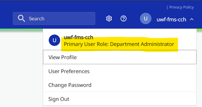Need to confirm your role? Simply click on your NetID in the upper right of FM:Systems to view your assignment.